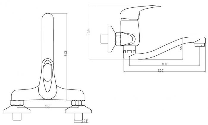 Bateria zlewozmywakowa ścienna DIAMOND Fidżi